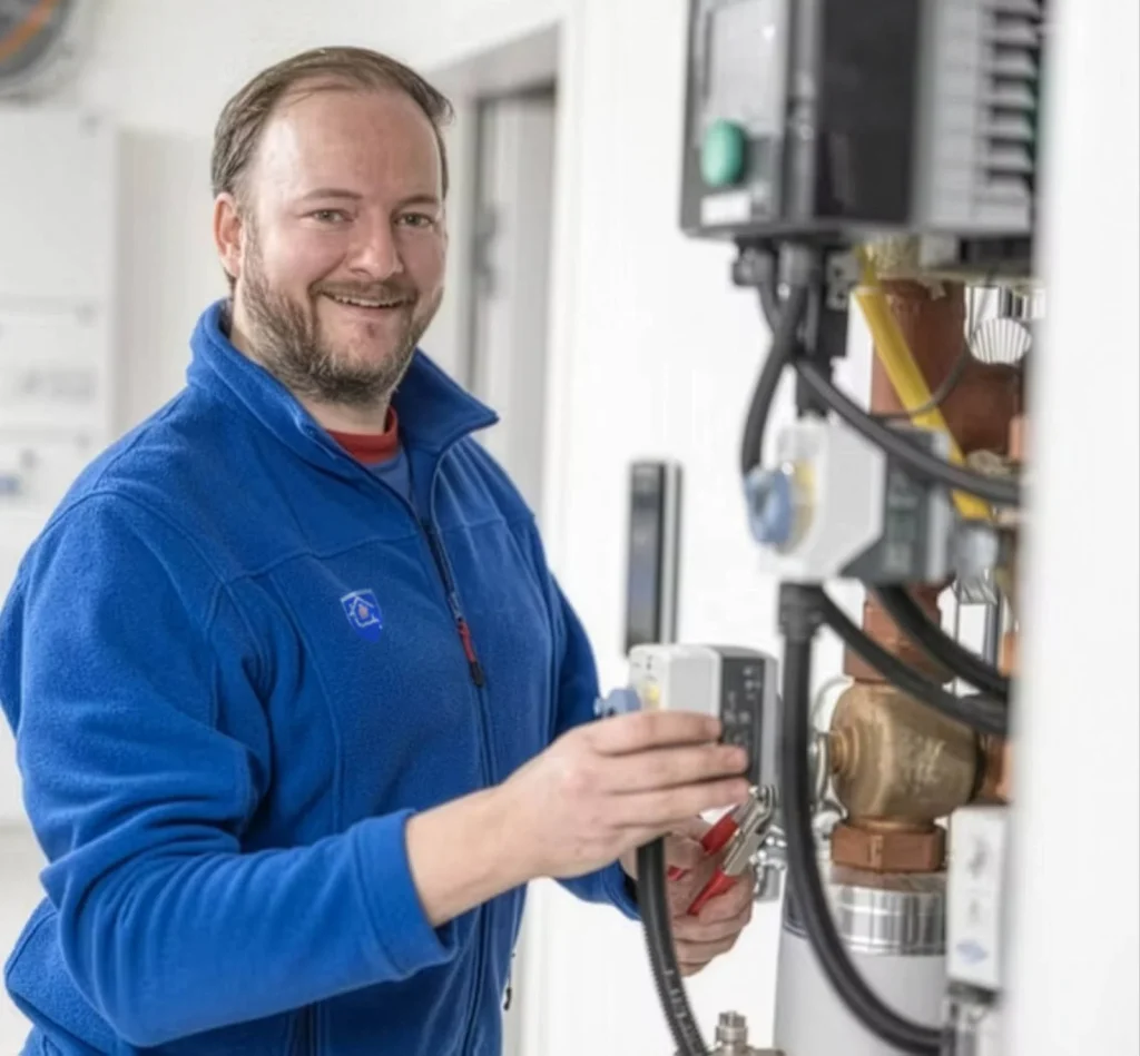 Wärmepumpen brauchen Techniker mit Kältemittel-Zertifikat(Sachkundenachweis nach EU-Verordnung 2015/2067) und Erfahrung mit Steuerungselektronik – nicht jeder SHK-Betrieb kann das. Unsere Monteure sind für Luft-Wasser-, Sole-Wasser- und Luft-Luft-Wärmepumpen aller gängigen Hersteller geschult und arbeiten mit Fehlerauslesegeräten statt Vermutungen.